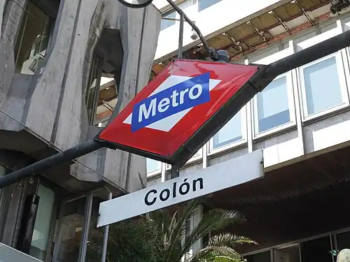 Colón ([koˈlon], Spanish for "Columbus") is a station on Line 4 of the Madrid Metro, located under the Monument to Columbus. It is located in fare Zone A.[1]