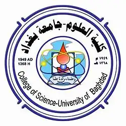 The College of Science is one of the Colleges of the University of Baghdad in Baghdad, Iraq. It was the first scientific college established in Iraq.[1] The main academic activities held in this college vary between pure and applied science. Beside its eight departments, the college also holds two research units. Being one of the earliest academic institutes formed in the Republic of Iraq, the College of Science establishment marked the (Day of Science).[2] This college was established on March 27, 1949, with the name of (The College of Arts and Science). The college was established with five scientific departments, namely: (Chemistry, Physics, Mathematics, Pathology and Anatomy). The Pathology and Anatomy departments were later joined together to form the (Department of Biology). Beside these, another four departments were added during the next fifty years, these are: Department of Geology (1953), Department of Computer Science (1983), Department of Astronomy (1998) and Department of Biotechnology (1999). The eight departments cover a wide range of branches of pure and applied sciences, which attracts many students as well as scientific researchers each year. Therefore, this college is considered as the largest scientific academic institute in the Republic of Iraq.