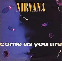 "Come as You Are" is a song by American rock band Nirvana, written by frontman and guitarist Kurt Cobain. It is the third track and the second single from the band's second studio album Nevermind, the single released in March 1992. It was the band's second and final American Top 40 hit, reaching number 32 on the Billboard Hot 100. It was also their second UK Top 10 hit, reaching number 9 on the UK Singles Chart. The single reached the Top 10 in eight countries and the Top 40 in eleven further countries.