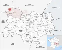 The communauté de communes du Pays de Tronçais is a communauté de communes, located in the Allier department of the Auvergne-Rhône-Alpes region of France. Created in 1999, its seat is in Cérilly.[1] Its area is 495.6 km2, and its population was 7,469 in 2020.[2]
