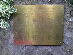 On 2 June 1945, the dead of the mass grave were recovered from the concentration camp and buried in the Tailfinger cemetery. The following was engraved on a wooden cross: "72 unknown concentration camp prisoners rest here“. In the 1960s, the sons of Ignac Klein erected a gravestone.[5] In 1986, commemorative plaques were erected at the Tailfinger cemetery from the community and the Jewish religious community of Württemberg at a memorial service for the victims of the camp.[6] As part of the memorial, a plaque with the names of the buried was erected in 2010.