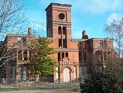 After the introduction of Care in the Community in the early 1980s, the hospital went into a period of decline and closed on 31 December 1994.[1] In 1999, the hospital was largely destroyed by fire.[4] The buildings, with the exception of the administration block, were demolished and the hospital site now forms part of the Abbeymead residential area.[5] The administration block was converted into apartments in 2007.[6]