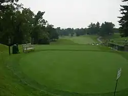 In order to avoid such a conflict, the USGA has employed various course configurations over the years to allow tournaments to be played over the Blue Course without finishing on the par-three 18th. For the 1964 U.S. Open (and 1976 PGA Championship), as well as for the Kemper Opens played in the 1980s, two holes from the adjoining Gold Course (5th & 15th hole) were inserted into the routing in order to allow the par-four 17th hole of the Blue Course (long considered the most demanding hole on the course) to be played as the 18th instead.