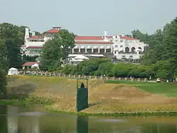 In 1943, during World War II, the Congressional Country Club was requisitioned by America's wartime intelligence service, the Office of Strategic Services, for use as a training facility and billeting returning OSS agents from active duty overseas.[7][8] The OSS's rent payments and reimbursement for post-war restoration works—they were said to have "ripped the course to shreds"—enabled the club to pay off its debts and gain a firm financial footing.[5][4]