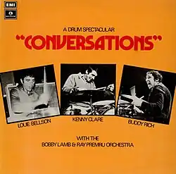 Conversations is a 1972 album showcasing three jazz drummers Buddy Rich, Louie Bellson, and Kenny Clare with the Bobby Lamb - Ray Premru Orchestra.