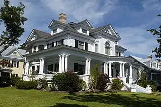 Coor-Bishop House is a historic home located at New Bern, Craven County, North Carolina. The original home was designed in the Georgian style by John Hawks and built about 1767. Between 1904 and 1908, the house was extensively remodeled to incorporate both Queen Anne and Georgian Revival concepts. The two-story frame dwelling features a high deck-on-hip roof, a projecting entrance pavilion, and a wide wraparound porch with Corinthian order columns.[2]