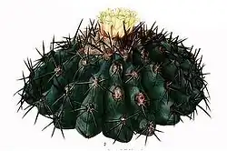 Copiapoa coquimbana is a species of clump-forming cactus native to South America. The plant bears 3 cm (1.2 in) long yellow flowers in summer, and grows up to 60 cm (2 ft) high and 1 m (3 ft) across. The species is named after the city of Coquimbo in Chile. Variations include C. coquimbana var. wagenknechtii, C. coquimbana var. vallenarensis, and C. coquimbana subsp. andina.