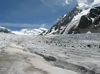 The Corbassière Glacier (French: Glacier de Corbassière) is a valley glacier in the Grand Combin massif in the Pennine Alps in southwestern Valais. It is 9.8 km (6.1 mi) long with an average width of slightly more than 1 km (0.62 mi) and covers an area of 17.4 km2 (6.7 sq mi).