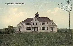 In 1770, heirs discovered the unrecorded deed, and hired attorney James Sullivan of Biddeford to pursue their claim. They won, and paid Sullivan for his services with the township he named Limerick. Small's descendants took possession of Newfield, Limington and Cornish, the latter first named Francisborough, then Francistown, after its original proprietor. Settled by Joseph Thompson in 1782, it was incorporated on February 27, 1794, as Cornish, presumably by settlers from the county of Cornwall, England. The soil was very productive for farming, producing large crops of corn and other types of grain. In 1859, the population was 1,144. The Portland and Ogdensburg Railroad ran up the Saco River valley in the early 1870s, servicing Baldwin Station across the bridge from Cornish.[5]