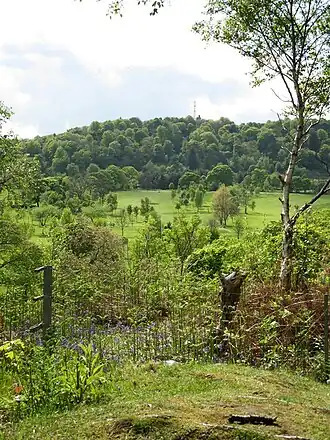 The hill is a prominent feature of Edinburgh's skyline. It appears as a long, low, L-shaped ridge, extending about 2.4 kilometres (1.5 miles) in length from north to south and rising to 161 metres (528 feet). The upper slopes, which are heavily wooded, form a local nature reserve (LNR), managed by the City of Edinburgh Forestry and Natural Heritage Service and the Friends of Corstorphine Hill. It is the largest urban woodland in the city.[2][3]