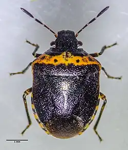 Cosmopepla uhleri is a stink bug native to the western regions of the United States,[1] including California and Oregon.[2] It is black with an orange transhumeral band that has black spots.[3] It uses Scrophularia californica as a host.[4]