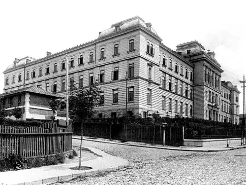 In the decades following World War II, the educational process suffered as a result of the imposition of the Soviet model, characterized by the reduction to 10 grades, modifications to the curricula, and attempts, especially in the 1950s, to suppress authentic national values. The high school, viewed as the exponent of the so-called "bourgeois elite", was subject to political pressure on teachers, through forced replacements and secondments, and the abolition of a particularly valuable library of approximately 10,000 volumes in 1954.[4] During the Stalinist period, the name of the high school was changed several times, becoming "Boys' High School No. 2" (1949-1952), "10-Year School No. 2 for Boys" (1952-1954) and "Secondary School No. 2 for Boys" (1954-1956).[5]