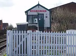Also on the site at Coundon Road was the 1876 LNWR signal box, which controlled the level crossing gates and signals. The signal box closed on 23 May 2009 as part of the Coventry - Nuneaton line resignalling project, whereby the control of the level crossing and signalling passed to the West Midlands Signalling Centre, Birmingham. The signal box was finally demolished in the early hours of Sunday 26 January 2014, almost five years after signalling its last train.