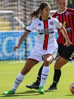 In July 2014, Sweetman-Kirk signed with FA WSL 2 club, Doncaster Rovers Belles.[7][8] She scored 20 goals in 20 matches during the 2015 FA WSL 2 season, helping lift the team to FA WSL 1 the following year.[9] She was subsequently named FA WSL 2 Players' Player of the Year.[10] During a match against Everton in August 2015, Sweetman-Kirk scored a hat trick after subbing in during the second half of the match when Everton was up 2–0. Her hat trick resulted in a 3–2 win.[11]