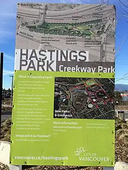 Creekway Park is a small daylighting habitat located in the Hastings-Sunrise area of Vancouver, British Columbia, Canada. The park, which is located at 2957 Bridgeway Street just southeast of New Brighton Park between McGill Street and the railway tracks, was completed in September 2013 as the first stage of the Vancouver City Council's plan to eventually connect New Brighton Park with Hastings Park.[1]
