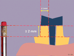 In recent years, the technological advances afforded by CAD/CAM dentistry offer viable alternatives to the traditional crown restoration in many cases.[15][55][56] Where the traditional indirectly fabricated crown requires a tremendous amount of surface area to retain the normal crown, potentially resulting in the loss of healthy, natural tooth structure for this purpose, the all-porcelain CAD/CAM crown can be predictably used with significantly less surface area. As a matter of fact, the more enamel that is retained, the greater the likelihood of a successful outcome. As long as the thickness of porcelain on the top, chewing portion of the crown is 1.5mm thick or greater, the restoration can be expected to be successful. The side walls which are normally totally sacrificed in the traditional crown are generally left far more intact with the CAD/CAM option. In regards to post and core buildups, these are generally contraindicated in CAD/CAM crowns as the resin bonding materials do best bonding the etched porcelain interface to the etched enamel/dentin interfaces of the natural tooth itself. The crownlay is also an excellent alternative to the post and core buildup when restoring a root canal-treated tooth.