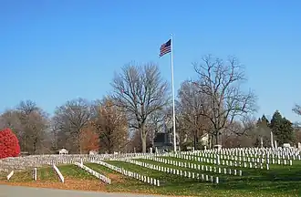On October 27, 1969, Major Robert W. Hayes of the 774th Tactical Airlift, was killed when his plane exploded over Chu Lai, in what was then South Vietnam. He is interred in Section 10, the final burial in Crown Hill's National Cemetery.[13] As of December 31, 1998, the National Cemetery includes 795 burial sites.[6] Crown Hill Cemetery, including the National Cemetery, was listed on the National Register of Historic Places on February 28, 1973. The National Cemetery portion, which is listed separately, was added to the National Register on April 29, 1999.[6]