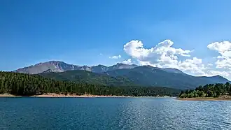 Crystal Creek Reservoir is a reservoir on Crystal Creek on the northwest side of Pikes Peak in El Paso County, Colorado. The reservoir is impounded by Crystal Creek Dam, which is on the border of Teller and El Paso counties. The reservoir and surrounding Pike National Forest land offers opportunities for boating, fishing, camping, and hunting, among other activities and can be accessed from the Pikes Peak Highway.[1][2] It is one of three reservoirs that are part of the North Slope Recreation Area located northeast of Colorado Springs.[3] On July 20, 2023 a rare EF-1 tornado developed rapidly on the north slope of Pikes Peak and crossed directly through the reservoir.
