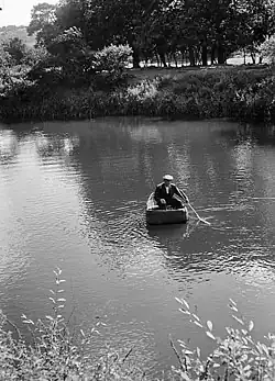 Gerald of Wales commented on the spectacular sight of salmon leaping at the waterfalls at Cenarth [30] while Bobby Freeman recalls that when she ran a hotel in Pembrokeshire in the 1960s, salmon from the river Teifi would be dropped off by bus outside the hotel, with the bus conductor carrying them in boxes to the kitchen. The fish had been packed in cool, fresh bracken with six or seven big fish to a box.[31][32]