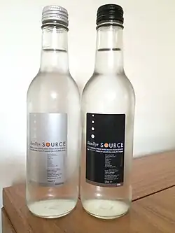 Tŷ Nant is a 350 year old farm near Bethania, Ceredigion. The farm has bottled spring water since 1986. The Tŷ Nant brand was established in 1989 and is recognised by its distinctive cobalt blue, glass bottles which won a British Glass Federation design award and were the first bottles to use dark blue glass since Phillip's Milk of Magnesia.[104] Llanllyr is a bottled water which has been drawn since 1180 at an organic farm in Talsarn, and is available throughout Wales.[105]