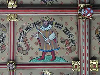 Asser presents Alfred as saintly; however Alfred was never canonised (in 1441 Henry VI of England attempted unsuccessfully to have him canonised by Pope Eugene IV), so in Catholic medieval England artists turned to the royal Anglo-Saxon saints such as Saint Edmund the Martyr and Saint Edward the Confessor, for inspiration as subjects. (Though venerated at times in the Catholic Church, the current "Roman Martyrology" does not mention Alfred.)[2][3] While he was not venerated in art, the medieval historians William of Malmesbury, Matthew Paris and Geoffrey of Monmouth further reinforced Alfred's favourable image as a pious Christian ruler.[1]