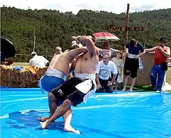 • Rapa das Bestas ("shearing of the beasts") in Sabucedo, the first weekend in July, is the most famous of a number of rapas in Galicia and was declared a Festival of National Tourist Interest in 1963. Wild colts are driven down from the mountains and brought to a closed area known as a curro, where their manes are cut and the animals are marked, and assisted after a long winter in the hills. In Sabucedo, unlike in other rapas, the aloitadores ("fighters") each take on their task with no assistance.