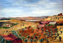 After independence in 1956, the art movement in Tunisia was propelled by the dynamics of nation building and by artists serving the state. A Ministry of Culture was established, under the leadership of ministers such as Habib Boularès who saw art and education and power.[66] Artists such as Hatem El Mekki and Zoubeir Turki gained international recognition and influenced a new generation of young painters. Sadok Gmech drew his inspiration from national wealth, while Moncef Ben Amor turned to fantasy. Youssef Rekik revived the technique of painting on glass and founded Nja Mahdaoui calligraphy with its mystical dimension.[66]