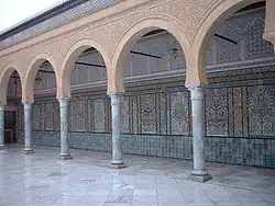 During the Turkish conquest in the sixteenth century, mosques, such as that of Sidi Mahrez Mosque in Tunis were erected in a manner to those in Constantinople, although the Zaouias generally retain their north African style in Kairouan.[1]