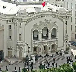 The Tunisian theater was mostly developed in the late nineteenth and early twentieth centuries, during the French protectorate. Theaters grew up, such as the French Theater, Politeama Rossini, Arena, Theater Tunisia, the Gringa, Paradiso, etc. Some wooden theaters have since been destroyed by fire, while others have simply changed their function; only one is still in use as a theater, the Municipal Theater of Tunis.[48] In over a century of existence, the theater has hosted big names of the Tunisian and international theatrical scene, such as Sarah Bernhardt, Pauline Carton, Gérard Philipe and Jean Marais.[48] On November 7, 1962, the Tunisian president Habib Bourguiba (whose brother, Mohamed Bourguiba, was a playwright), devoted his speech to theater,[49] which he considers "a powerful means of disseminating culture and a most effective means of popular education".[50] From this date, November 7 is regarded as the Tunisian National Day of drama.[51]