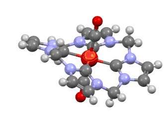The strong σ-donation of the four NHC ligands make high-spin configurations less favorable as well as pushing the dx2-y2 orbital above the dz2. Additionally, many cyclic tetracarbene examples in the literature with an iron(II) center have a +2 change, whereas heme-iron(II) complex is neutral due to the -2 change of the ligand itself. Macrocyclic imidazolylborane derived NHC tetracarbene visualized above is an exception to this and is thought to resemble heme more closely.[1][4]