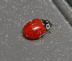 Cycloneda polita, known generally as the western blood-red lady beetle, polished ladybug, or western spotless ladybird beetle, is a species of lady beetle in the family Coccinellidae. It is found in North America.[1][2][3] It has red elytra without spots and a black thorax marked with a white rim and crescents.[4]