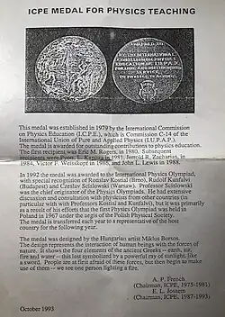 Awardsmedal of the International Conference on Physics Education (ICPE)