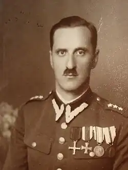 ![]() Czesław Gawlikowski in a military uniform with decorations, c. 1937 | |