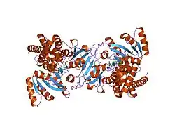 DXP reductoisomerase (1-deoxy-D-xylulose 5-phosphate reductoisomerase or DXR) is an enzyme that interconverts 1-deoxy-D-xylulose 5-phosphate (DXP) and 2-C-methyl-D-erythritol 4-phosphate (MEP).[1]