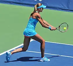Daniela Hantuchová (Slovak pronunciation: [ˈdaɲɪela ˈɦantuxɔʋaː]; born 23 April 1983) is a Slovak tennis commentator and retired player. She turned professional in 1999 and had her breakthrough year in 2002, when she won her first WTA Tour title at the Indian Wells Open, defeating Martina Hingis in the final and becoming the lowest-ranked player to ever win the tournament. She also reached the quarterfinals of that year's Wimbledon Championships and US Open, ending the year in the top ten. She was part of the Slovak team that won the 2002 Fed Cup and the 2005 Hopman Cup.