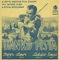 Dankó Pista is a 1940 Hungarian drama film directed by László Kalmár and starring Pál Jávor, Erzsi Simor and Margit Lukács.[1] It premiered at the Venice Film Festival. The film enjoyed particular success on its release in Norway.[2] The film's sets were designed by the art director Márton Vincze.