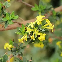 The shrub is evergreen, and grows from 0.6 to 1.2 meters tall. Its different variants grow either erect or more prostrate, accounting for the variance in height.[2] It is often found on slopes and ledges, particularly the faces of limestone cliffs.[1] It was introduced to European gardens by George Forrest in 1906, from collections in the Lijiang Range in NW Yunnan. He described it as "One of the most beautiful plants in western Yunnan".[3]