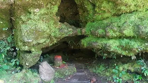 After exiting the tunnel, the water passes through a cave called Gupteshwor Mahadev Cave or "cave beneath the ground". The Phewa Lake dam is the water source of this falls.[4] The cave also acts as a tourism site because it has complex designs and people even forget the way which is inside the cave.