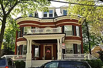 The DeRosay-McNamee House is an historic house at 50 Mt. Vernon Street in Cambridge, Massachusetts. It is a 2+1⁄2-story brick house, with a dormered hip roof and limestone trim. Its main facade exhibits high-quality Colonial Revival styling, with a symmetrical appearance that includes rounded bays flanking the main entry, and an entrance porch supported by clusters of distinctively turned columns. It was built c. 1895-6 by the principal owner of a local brickyard, who pioneered modernizations allowing for the year-round manufacture of bricks.[2] It was later home to Cambridge mayor John H. H. McNamee.[3]