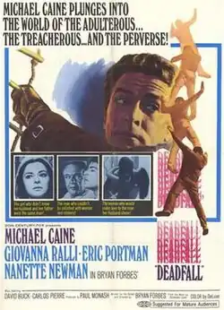 Deadfall is a 1968 British neo noir crime film based on Desmond Cory's 1965 thriller of the same name. The film was written and directed by Bryan Forbes and stars Michael Caine, Eric Portman, Giovanna Ralli and Forbes's wife Nanette Newman, with music by John Barry in his final collaboration with Forbes.[1] Barry also plays a musical conductor in the film. The film's theme song, "My Love Has Two Faces", was performed by Shirley Bassey. The film was shot in and around Majorca, Spain.