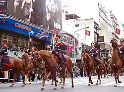 There was a ceremony afterwards with speeches from politicians from Alfonsín's tenure and from the Kirchner administration.[15] The ceremony was aired in cadena nacional. It was followed by a mass given by José María Arancedo, archbishop of Santa Fe. Finally, a procession in the Callao Avenue with a military escort took the corpse to the La Recoleta Cemetery. People threw flowers to the coffin, flew Argentine and radical flags, and sung the national anthem.[16] He was left in the pantheon for the veterans of the Revolution of the Park, until he got a special one for himself.[17]