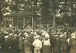 Debs, at center, delivering the speech in Canton, Ohio, for which he was prosecuted