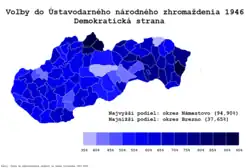 Performance of DS at the 1946 election by districts. Strongest: Námestovo (94.9%); weakest: Brezno (37.65%)