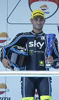 Dennis Foggia (born 7 January 2001) is an Italian motorcycle rider currently competing in the 2025 Moto3 World Championship, riding for CFMoto Aspar Team. He previously competed in Moto3 between 2017 and 2022, becoming the 2021 runner-up as well as finishing third in 2022. Prior to his return to the lightweight class, he competed in Moto2 for two years, riding for Italtrans Racing Team.