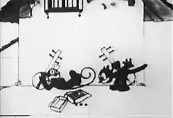 As Krazy wanders further, he encounters a hippo having a toothache, and a rat who tries to extract the tooth. After being unable to remove it, the rat gives up and tells Krazy to take over. Krazy tries to pull the tooth but finds it very difficult. He even goes as far as entering the hippo's stomach but to no avail. As a last resort, Krazy places a stick of dynamite in the cavity of the tooth and lights the fuse. Following the blast, Krazy takes the now separated tooth, and even receives payment as a money note falls from the sky. The hippo, however, is nowhere to be seen. The film ends with Krazy sitting on the tooth.