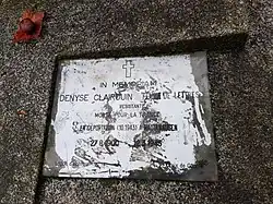 ![]() Plaque in memory of Denyse Clairouin at the Père Lachaise Cemetery (division 24), Paris | |