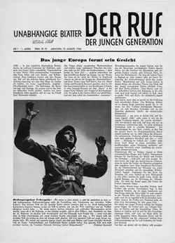 After returning to Germany Andersch and Richter, along with several others from Fort Kearny, founded a new newspaper, also called Der Ruf.[2]: ix–x [6] This iteration of Der Ruf grew to a circulation of 100,000 subscribers.[6] It promoted social democracy while harshly criticizing the American occupation.[6] They intended to use this paper to promote the idea that the war had provided German people with the opportunity to rebuild the entire society in a way that would promote peace in Europe.[2]: ix–x They wanted Germany to unite with the rest of Europe, but they became frustrated with the allied occupation of Germany.[6][2]: x They did not want Germany to be dominated by either the United States or the Soviet Union.[6][2]: x At times the paper was seen as being overly nationalistic.[6] The growing antagonism between the United States and Soviet Russia, along with their refusal to take sides led American military authorities to remove Andersch and Richter as editors of the paper in 1947, at which point they helped to found the hugely influential Group 47 literary movement.[2]: x After their departure, they were replaced as editors by Erich Kuby.[2]: xiv