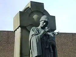 The Derby War Memorial was designed by Charles Clayton Thompson and stands before the Derby Guildhall. It features a bronze figure of the Virgin Mary holding the baby Jesus in her arms by the sculptor George Arthur Walker.[1] It was completed in 1924 and unveiled on 11 November 1924.[1] Behind this bronze figure is a large Celtic cross.[2] The memorial was erected to commemorate the fallen of The Great War with the inscription "The Great War/1914-1918".