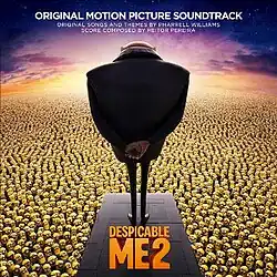 Despicable Me 2: Original Motion Picture Soundtrack is the soundtrack album for the 2013 film Despicable Me 2; the sequel to Despicable Me (2010). The album was released on July 2, 2013, through Back Lot Music.[2][3] The original music was composed by Heitor Pereira and Pharrell Williams, who previously scored for Despicable Me.[4] The soundtrack to the film featured 24 tracks – eight songs and the remainder of the album, consists of original score tracks. Out of the eight songs, three original tracks, written by Williams, were featured in the album as well as the tracks "Another Irish Drinking Song", "I Swear" and "Y.M.C.A." were incorporated into the album. Besides that, two tracks from Despicable Me: "Fun, Fun, Fun" and the titular track is also featured in the soundtrack.[4]