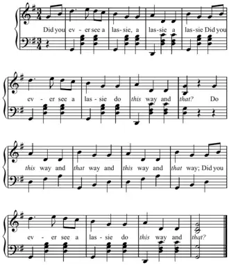 - ^ "Did You Ever See A Lassie". TwinkleTrax Children's Songs. 2012. Archived from the original on 4 March 2016. Retrieved 17 May 2012.
